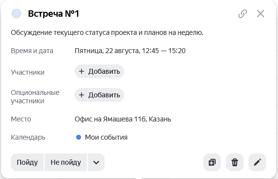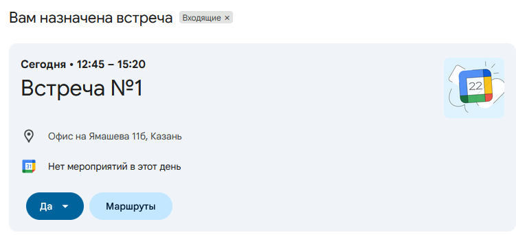 При успешной отправке всем участникам встречи будет отправлено персональное письмо с календарным приглашением.