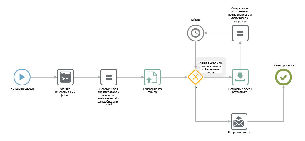 Сценарий для отправки календарных приглашений выглядит следующим образом: